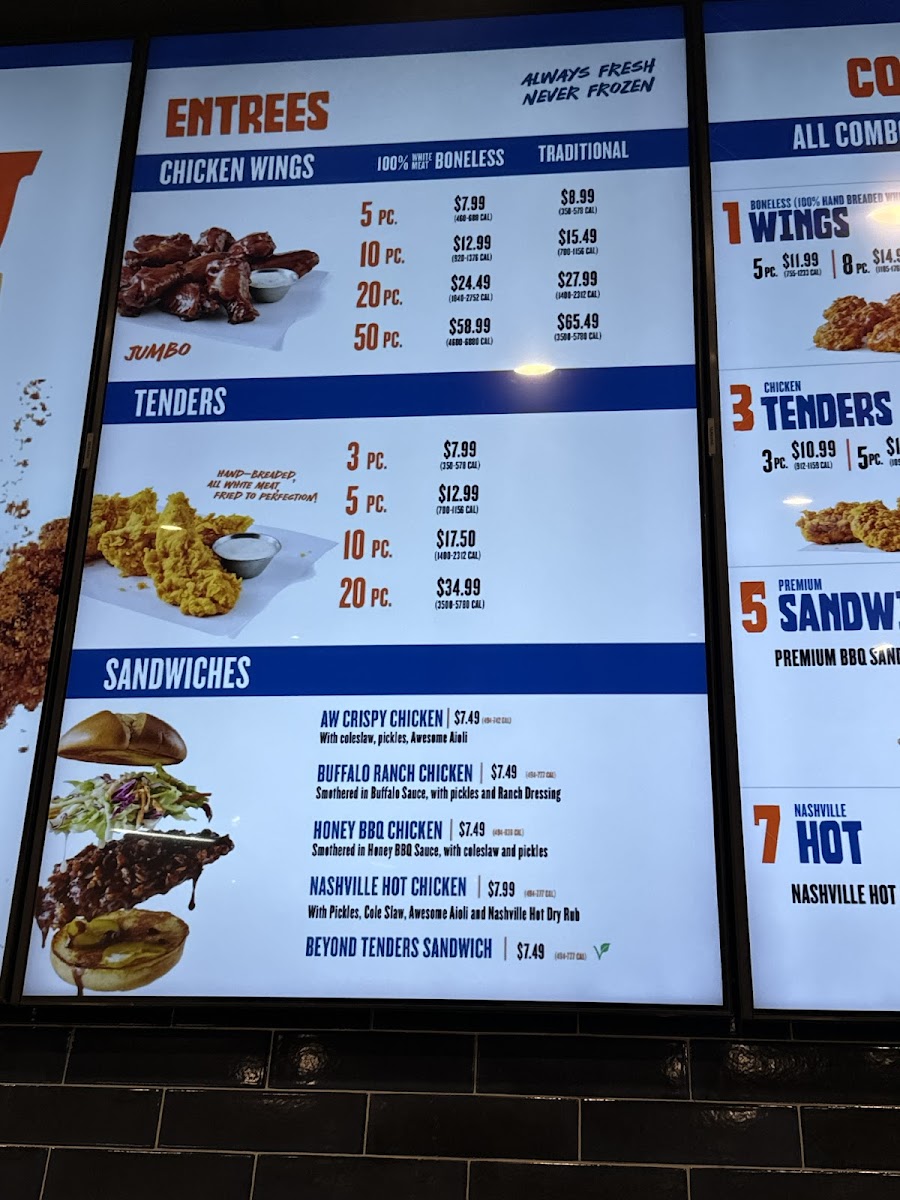 “ Yummy hot fresh mouth - watering wings! Ordered honey BBQ , fries and garlic Parmesan . Made just right. Place is done very well. lots of tables to sit and eat. Staff is very nice, Service is very good. I think I will go back for dinner too! There is so much more I want to try! I think I will go for the Atomic wings and Cauliflower wings Next! This is my new favorite place to eat! ”